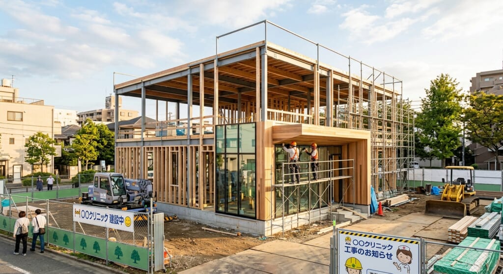 現在、クリニックの建設工事が着々と進んでいます!🚧